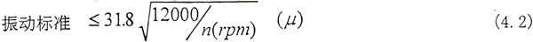 按此標(biāo)準(zhǔn),在G軸和電機(jī)軸軸承處的振動(dòng)不能大于63.8(μ)。從圖4.5a~4.5b和圖4.6a~4.6f可見,不論是用單軸還是用耦合系統(tǒng)來計(jì)算,除了在共振區(qū)域內(nèi),上述振動(dòng)標(biāo)準(zhǔn)完全滿足。