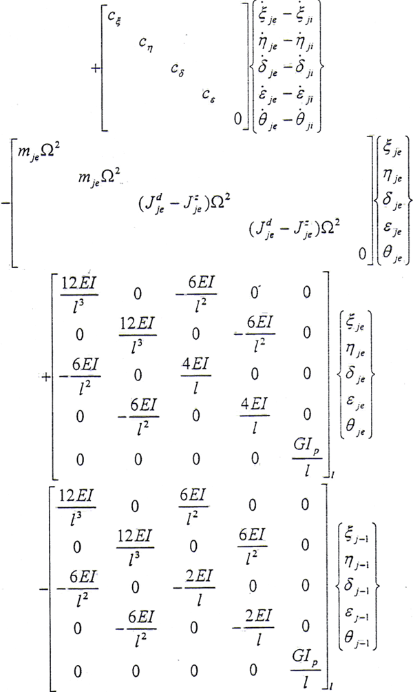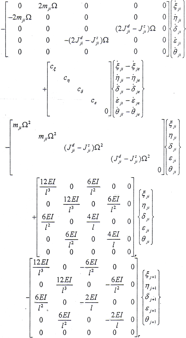 加到相應(yīng)結(jié)點處的運動方程的左邊,即可得到在旋轉(zhuǎn)坐標系中的軸承—轉(zhuǎn)子—齒輪聯(lián)軸器系統(tǒng)的運動微分方程。