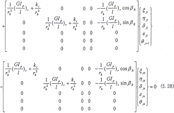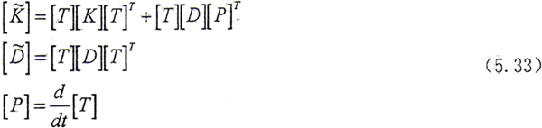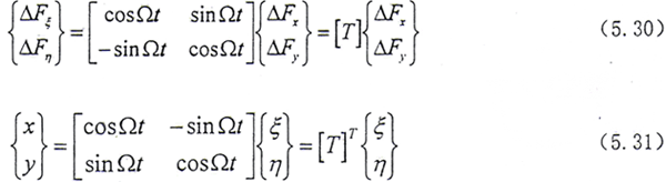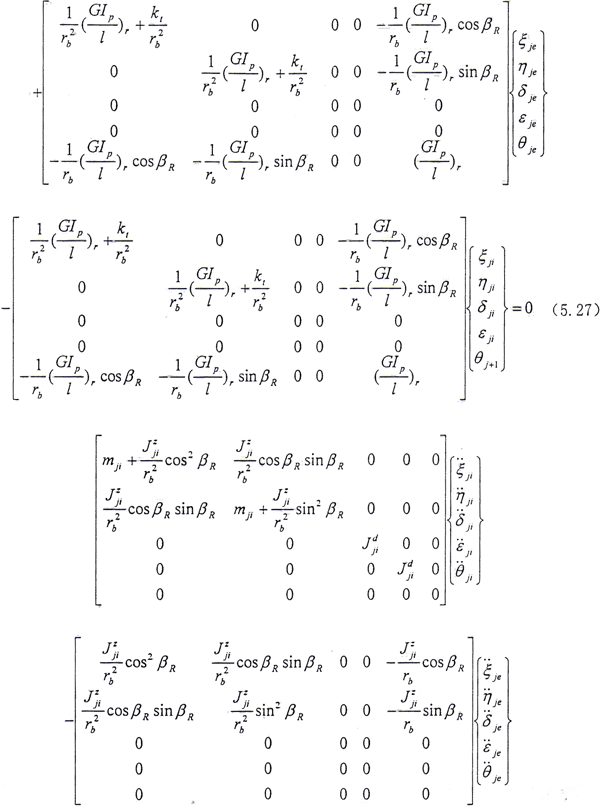 (5.27)式、(5.28)式中所定義的Ω方向與Z軸方向相同,當Ω方向與Z軸方向相反時,Ω以-Ω代入即可。從上式可見,方程系數(shù)矩陣中的元素與βE有關(guān),而βR又與系統(tǒng)的廣義坐標有關(guān),因此方程是非線性的。只有在βR變化很小時才能進行線性分析。