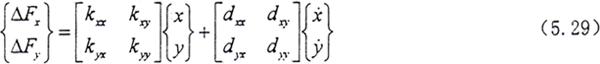 其中kxx,kxy,kyx,kyy為油膜剛度系數(shù),dxx,dxy,dyx,dyy為油膜阻尼系數(shù)。