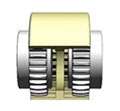 橡膠元件(輪胎體)與金屬壓板硫化粘結(jié)在一起,裝配時(shí)用螺栓直接與兩半聯(lián)軸器
