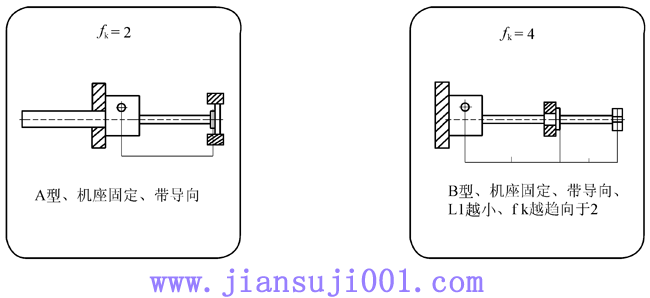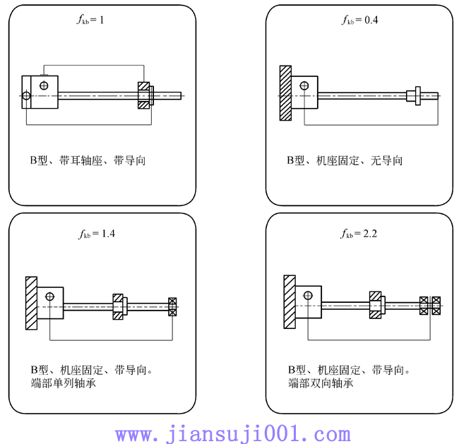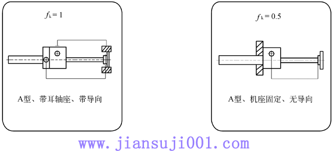 fK:根據(jù)絲杠軸承類型和支撐方式給定的修正參數(shù),按下圖確定;
