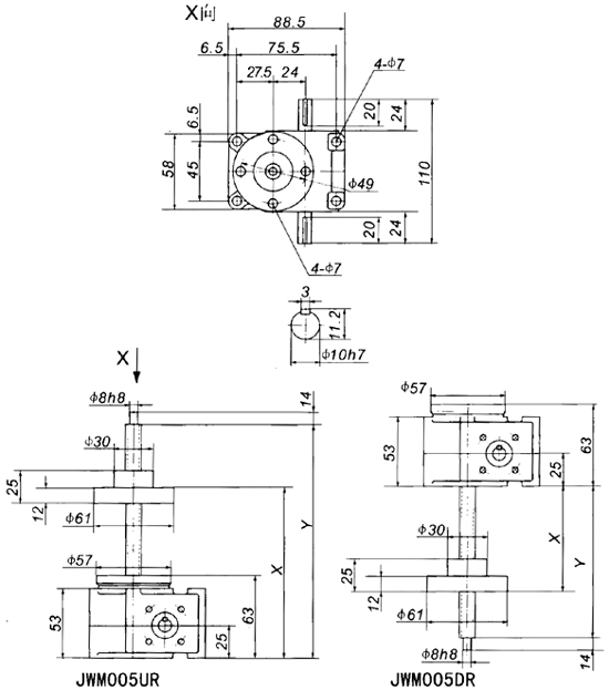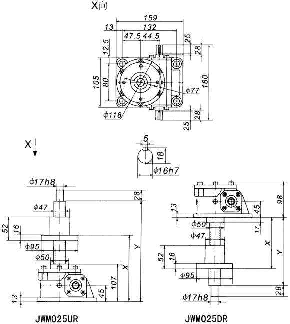 JWM型(梯形絲桿型)適用于低速、低頻率的場合,主要構(gòu)成部件為:精密梯形絲桿副與主精度蝸輪蝸桿副。