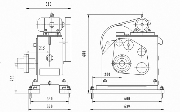 適用于額定負(fù)載轉(zhuǎn)矩不大于15000 N.m(建議用于15噸/小時(shí)蒸發(fā)量)的鏈條爐排鍋爐;也可用在要求速比大、能在適當(dāng)范圍內(nèi)調(diào)速,負(fù)載轉(zhuǎn)矩相當(dāng)?shù)钠渌O(shè)備上。配用YCT132-4A(1.1 kW)電磁調(diào)速電機(jī),輸出轉(zhuǎn)速0.0140-0.1402 r/min,整機(jī)重量620kg。