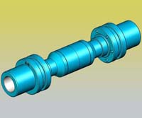 球籠式萬向聯(lián)軸器是通過球籠外環(huán)和星形內(nèi)環(huán)分別與主、從動(dòng)軸相聯(lián),傳力鋼球的中心都位于通過聯(lián)軸器中心的平面內(nèi),并裝在軸球形外環(huán)和星形內(nèi)環(huán)外球面凹槽組成的滾道中,兩個(gè)球面的中心與萬向聯(lián)軸器的中心重合,為了保證所有鋼球中心都在兩軸軸線間夾角的平分面上,鋼球裝于球籠內(nèi),從而保證了聯(lián)軸器主、從動(dòng)軸之間的夾角變化時(shí),傳力點(diǎn)能始終位于夾角的平分線上,因此,球籠式萬向聯(lián)軸器主、從動(dòng)軸間的轉(zhuǎn)速得以保持同步。