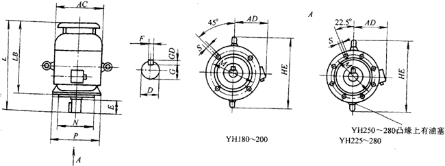 YH系列電動機外形及安裝尺寸圖(V1