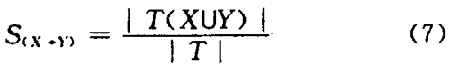 刀具選配理規(guī)則本質(zhì)上是一種關聯(lián)規(guī)則,即2 個或多個變量的取值之間存在某種規(guī)律性。為表示關聯(lián)規(guī)則挖掘的含義,做如下定義。定義1 :支持度(Support ) s 表示評判因素X 在所有待挖掘規(guī)則中出現(xiàn)的頻率,關聯(lián)規(guī)則X Y的支持度S 定義為: