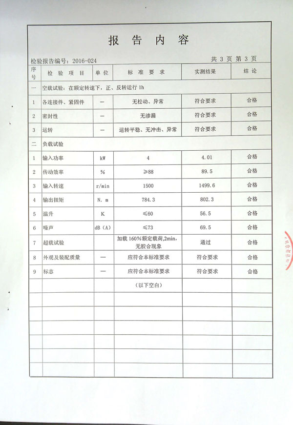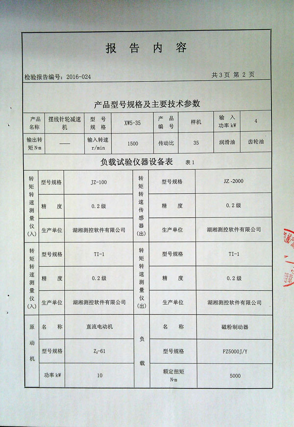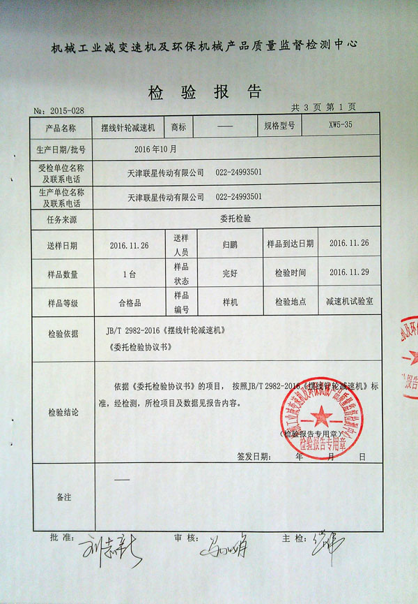 擺線針輪減速機(jī)檢測(cè)報(bào)告